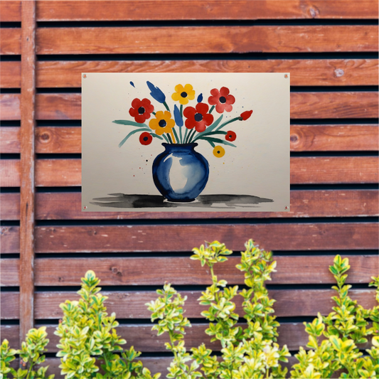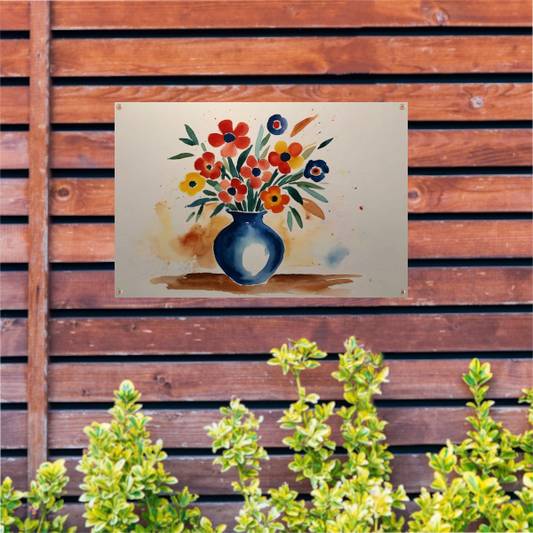 Kleurrijke Aquarel van Vaas met Bloemen tuinposter