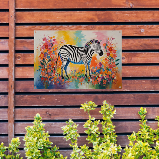 Zebra in Bloeiend Kleurrijk Bloemenparadijs tuinposter