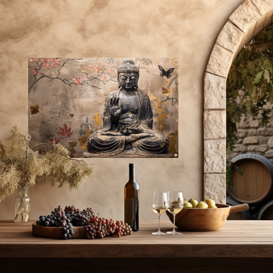 Boeddha in Herfstsereniteit: Sepia en Goud tuinposter