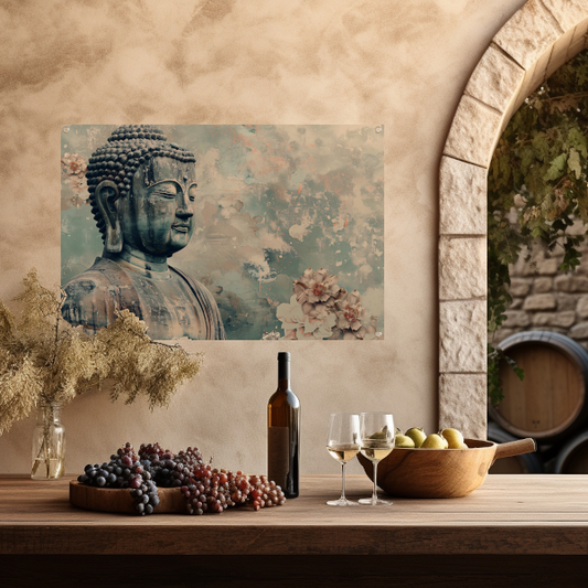 Mediterende Boeddha in Bloeiend Paradijs tuinposter