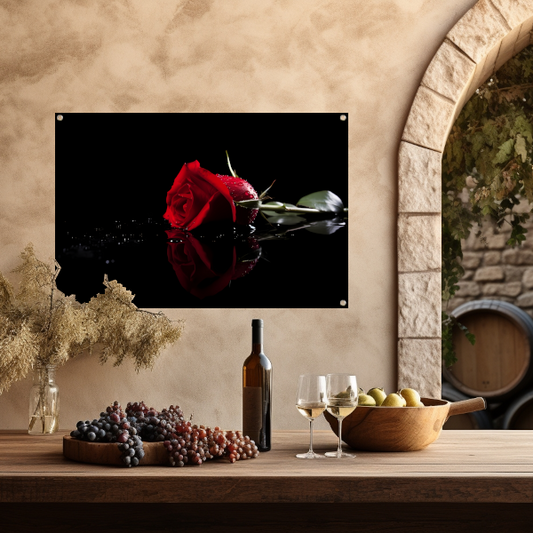 Close-up van rode bloem in donkere achtergrond tuinposter