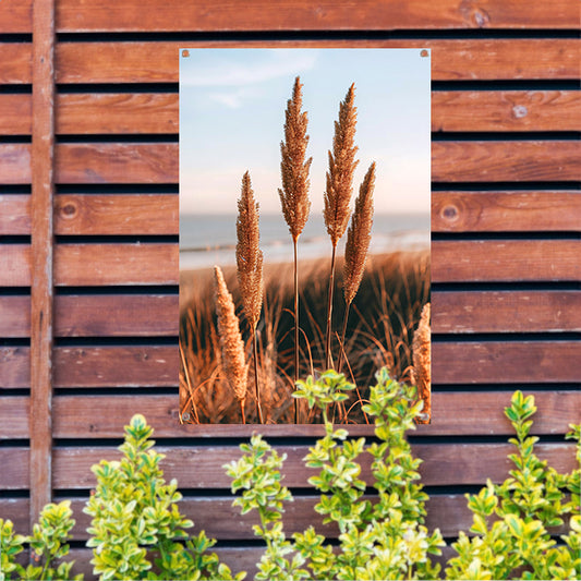 Gouden Grashalmen bij Zee in Zonsondergang tuinposter