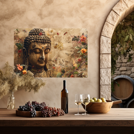 Boeddha in Sereniteit met Bloemenpracht tuinposter