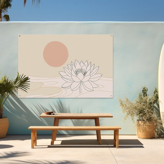 Minimalistische lotus bij zonsopgang tekening tuinposter