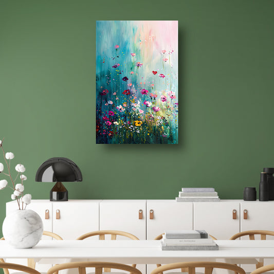 Abstract kleurrijk bloemenveld schilderij op canvas poster