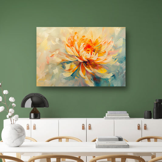 Abstract chrysant schilderij met levendige kleuren poster