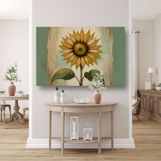 Zonnebloem schilderij met goud poster