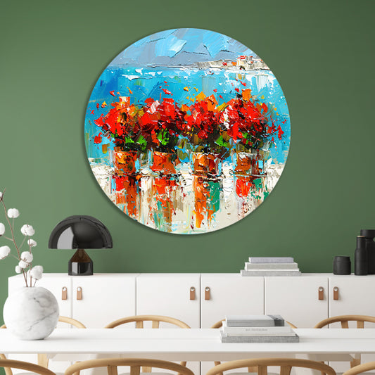 Moderne abstracte bloemen in vazen schilderij aluminium muurcirkel