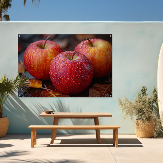 Drie Kleurrijke Appels met Dauwdruppels tuinposter
