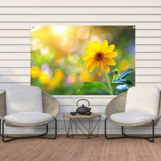 Prachtige zonnebloem in gouden en groene tinten tuinposter