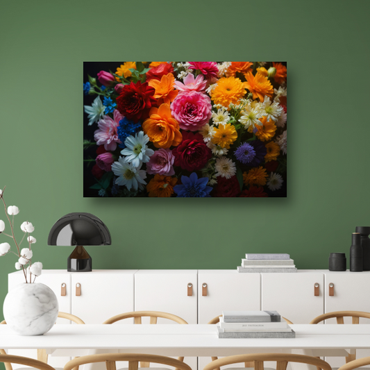 Levendige Bloemendiversiteit op Donkere Achtergrond acrylglas