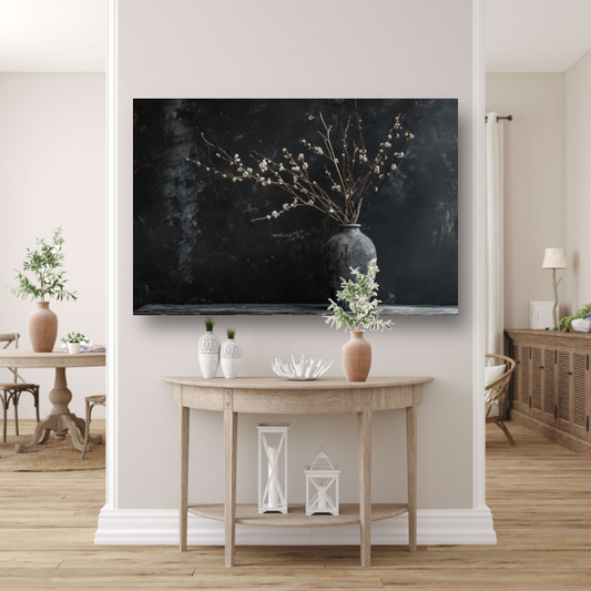 Rustieke Vaas en Takken op Zwarte Achtergrond acrylglas