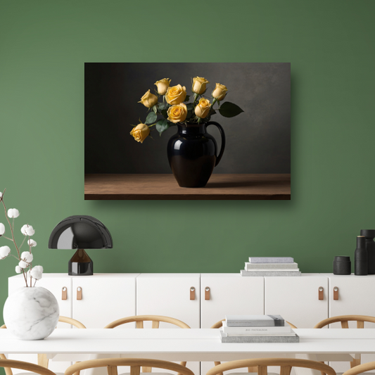 Zwart vaas met gele rozen stilleven acrylglas
