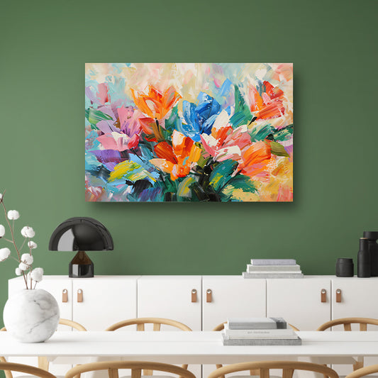 Levendige Abstracte Impressionistische Bloemenschilderij canvas met baklijst