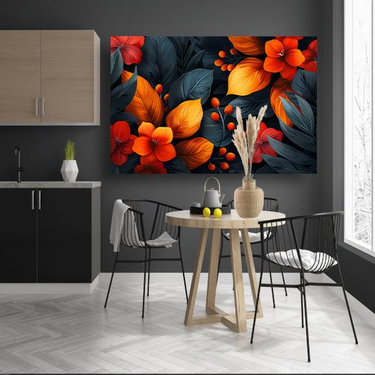 Moderne Dans van Oranje en Rode Bloemen canvas met baklijst