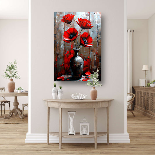 Moderne Rode Bloemen in Stijlvolle Zwarte Vaas canvas met baklijst