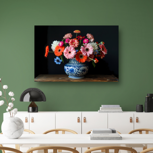Onze bloemen in vaas schilderijen brengen de elegante charme van bloemen naar je interieur. Met hun gedetailleerde en levendige afbeeldingen voegen ze kleur en schoonheid toe aan elke kamer. Of je nu houdt van klassieke boeketten, moderne bloemstukken of exotische combinaties, deze schilderijen vangen de pracht van bloemen op een verfijnde manier. Ze passen perfect in zowel moderne als traditionele interieurs. Eenvoudig op te hangen en ideaal voor de woonkamer, slaapkamer of eetkamer. Laat je muren opfleuren met de frisse uitstraling van bloemen in vaas en geniet van een stijlvolle en uitnodigende sfeer. Maak je ruimte compleet met de tijdloze schoonheid van onze bloemen in vaas schilderijen.