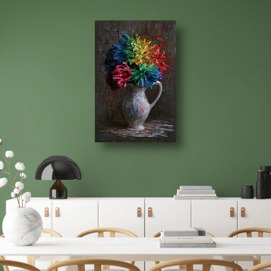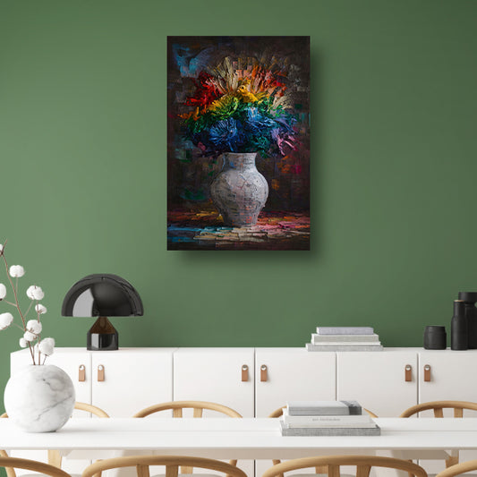 Explosie van Kleur in Vaas canvas met baklijst