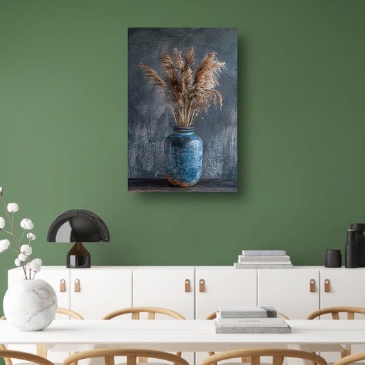 Blauwe vaas met beige pampasgras in minimalistische stijl canvas
