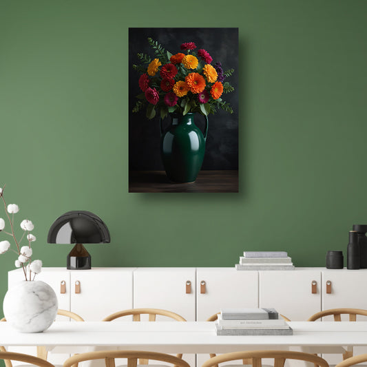 Levendig Bloemenboeket in Elegante Groene Vaas canvas