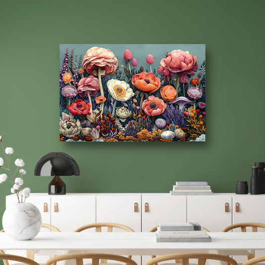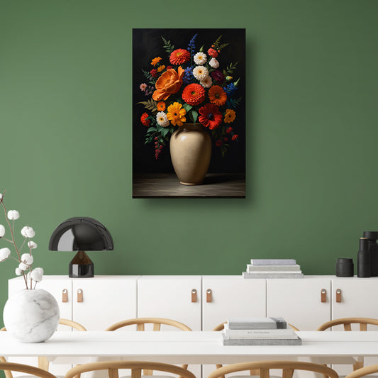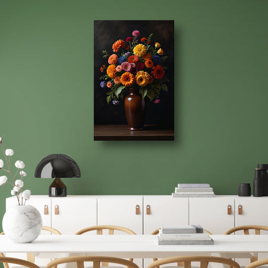 Kleurrijke Bloemenpracht in Donkere Vaas canvas