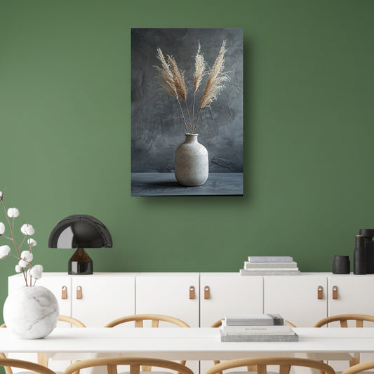 Minimalistische Vaas met Pampasgras tegen Donkere Achtergrond poster