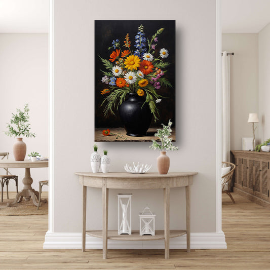 Kleurrijke Wildbloemen in Zwarte Antieke Vaas poster