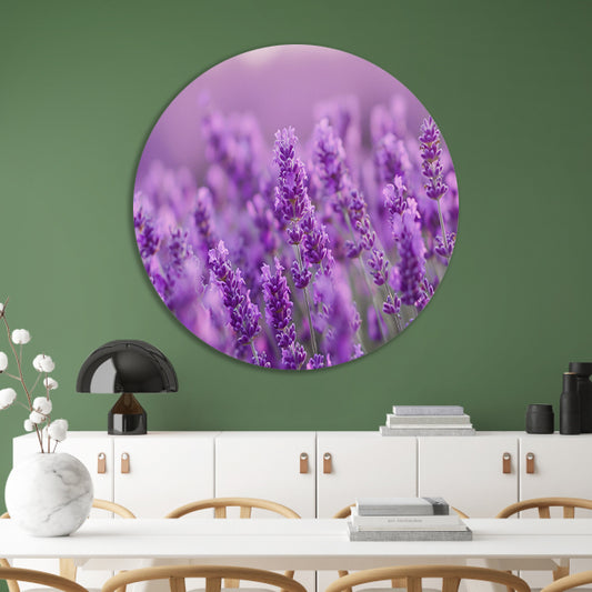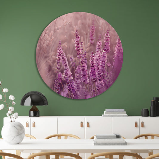 Betoverende lavendelvelden in zachte pasteltinten aluminium muurcirkel