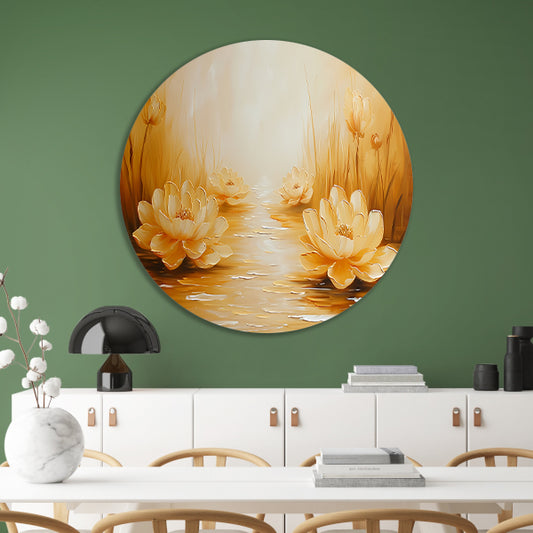 Gouden waterlelies in serene omgeving aluminium muurcirkel