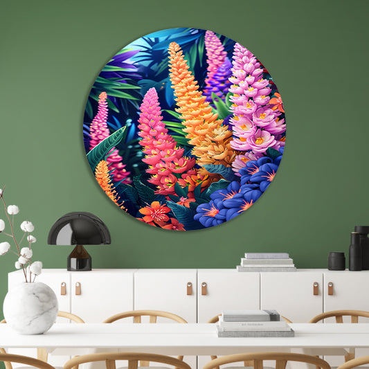 Levendige abstracte bloemenpracht in kleur aluminium muurcirkel