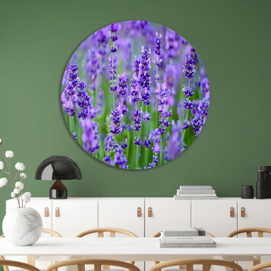 Levendig lavendelveld in volle bloei aluminium muurcirkel