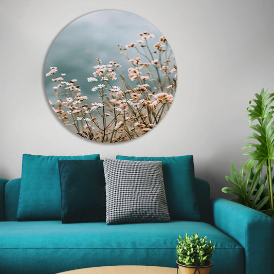 Minimalistische Wilde Bloemen in Zachte Tinten aluminium muurcirkel