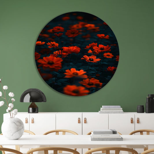 Levendige Bloemendiversiteit op Donkere Achtergrond aluminium muurcirkel