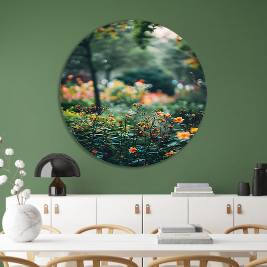 Kleurrijke Bloemenzee in Zachte Ochtendzon aluminium muurcirkel