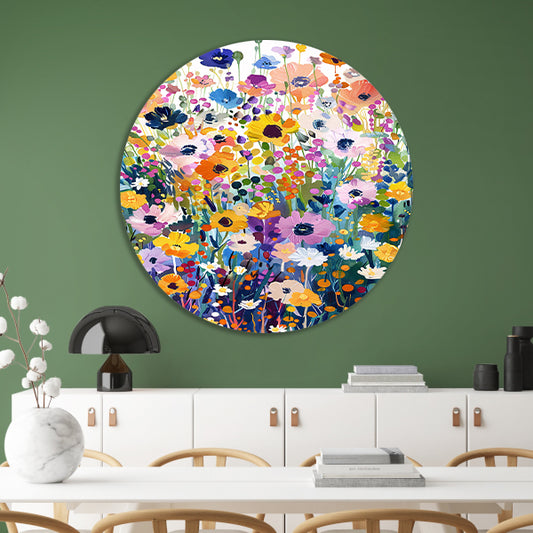 Kleurvol schilderij van bloemenveld in bloei aluminium muurcirkel