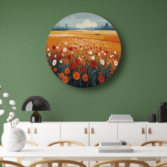 Onze bloemenveld muurcirkels brengen de betoverende charme van uitgestrekte bloemenvelden naar je muren. Met hun ronde vorm en levendige ontwerpen voegen ze een frisse en natuurlijke uitstraling toe aan elke ruimte. Of je nu houdt van kleurrijke bloemenweiden, serene veldbloemen of zonovergoten landschappen, deze muurcirkels vangen de pracht van een bloemenveld op een unieke manier. Ze passen perfect in moderne en klassieke interieurs en zijn eenvoudig op te hangen. Ideaal voor de woonkamer, slaapkamer of eetkamer. Maak je muren levendig en vrolijk met de natuurlijke schoonheid van bloemenvelden en creëer een sfeervolle en inspirerende omgeving. Geef je interieur een bloemenrijke boost met onze prachtige muurcirkels.
