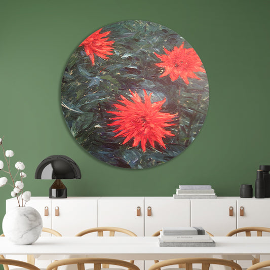 Rode cactusdahlias - Gustave Caillebotte aluminium muurcirkel