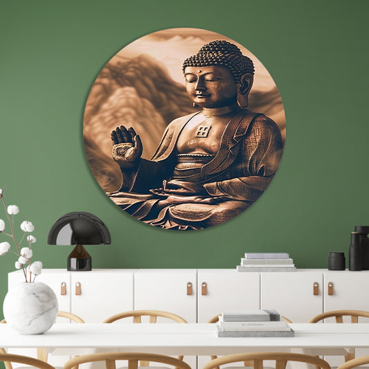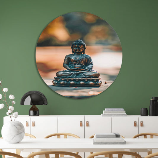 Serene Boeddha met rustgevende achtergrond aluminium muurcirkel