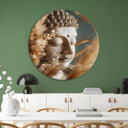 Stenen Boeddha in Natuurlijke Omlijsting aluminium muurcirkel