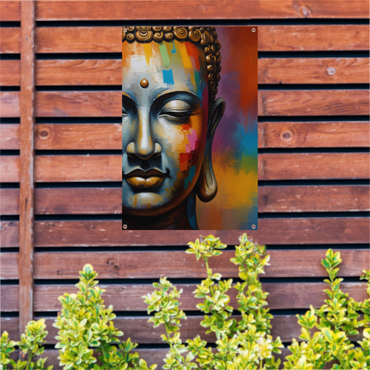Expressief Kleurrijk Boeddha Hoofd Portret tuinposter