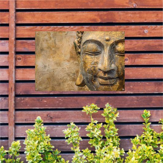 Boeddha Portret met Vergulde Versieringen tuinposter