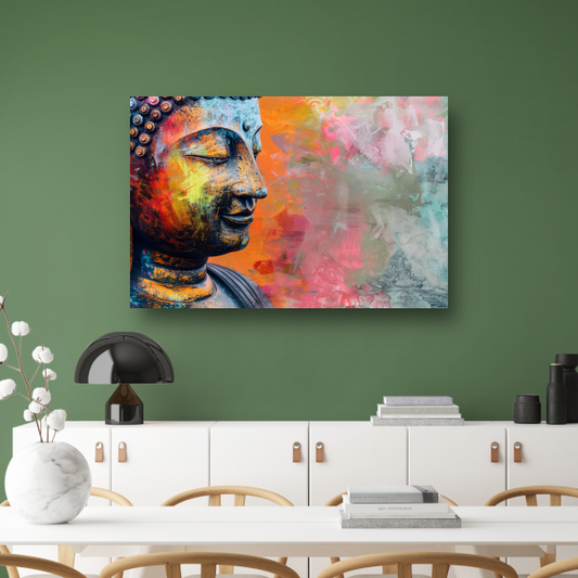 Boeddha Kunstwerk met Kleurrijke Betonnen Achtergrond acrylglas