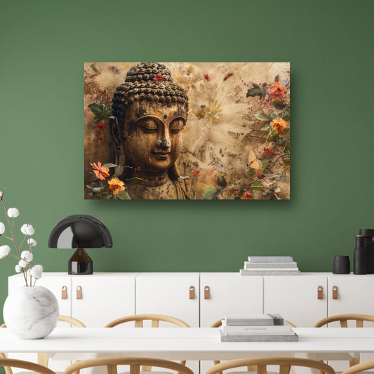Boeddha in Sereniteit met Bloemenpracht acrylglas