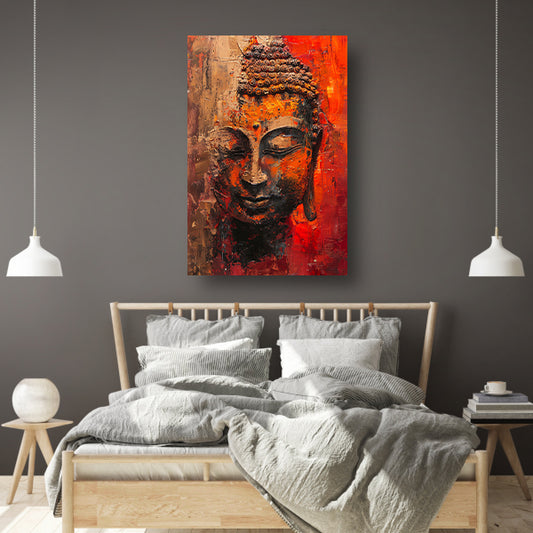 Abstract boeddha schilderij met rijke textuur canvas met baklijst