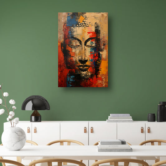 Abstracte Kleurrijke Interpretatie van een Boeddha Hoofd canvas met baklijst