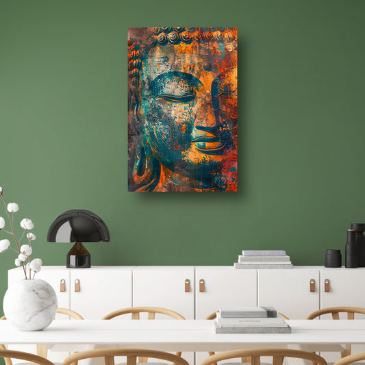 Kleurrijk rustiek Boeddha-portret voor serene sfeer canvas met baklijst
