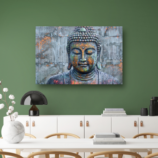 Boeddha Kunstwerk met Kleurrijke Betonnen Achtergrond canvas met baklijst