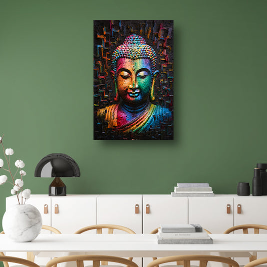 Serene Boeddha in Kleurrijk Spectraal Licht canvas