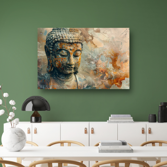 Verweerd Boeddha Hoofd met Abstracte Achtergrond canvas