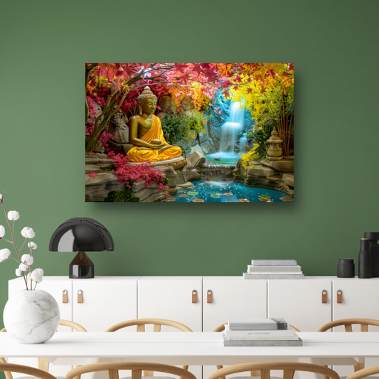 Meditatieve Boeddha in Herfstkleurige Oase canvas